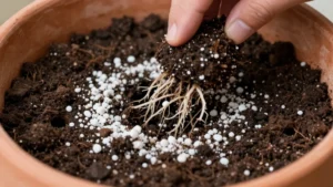 - Sustrato liviano: Usa una mezcla con perlita o coco para que no se apelmace.